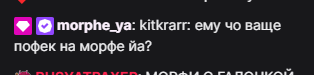 Про Морфилину плохое писать заканчивайте. Она снова под протекцией нашего Вади, так что ебальники вальнули и только восхищаемся. Видимо изменила свое отношение ко всему и теперь будет хорошей, раз Вадя снова с ней общается. Повзрослела
