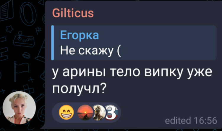 >>26126709 Этим подписчиком был БКТ, кстати. Форсил Аринян по всем чатам и хотел коллабу с Гилти. Женя даже ревновала, что модеры у других стримерш сидят, как сейчас с Лясей.