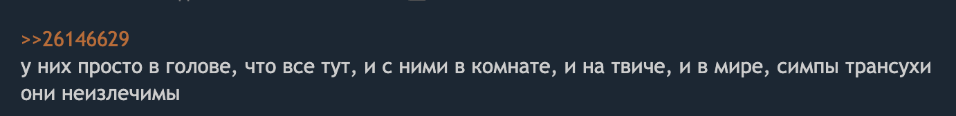 Поч? У вишни топовое тело, она в зал ходит, нет второго подбородка как у трансухи, и прически в основном женские красивые, длинные волосы. Как будто наоборот гоблин олицетворение транса, а вишня скорее зрелая женщина не?