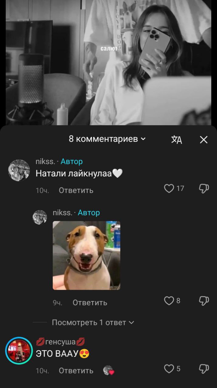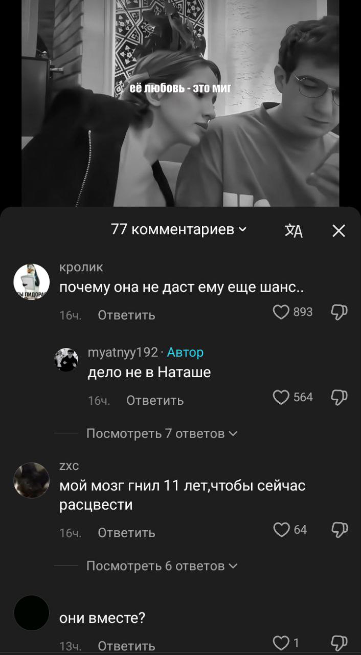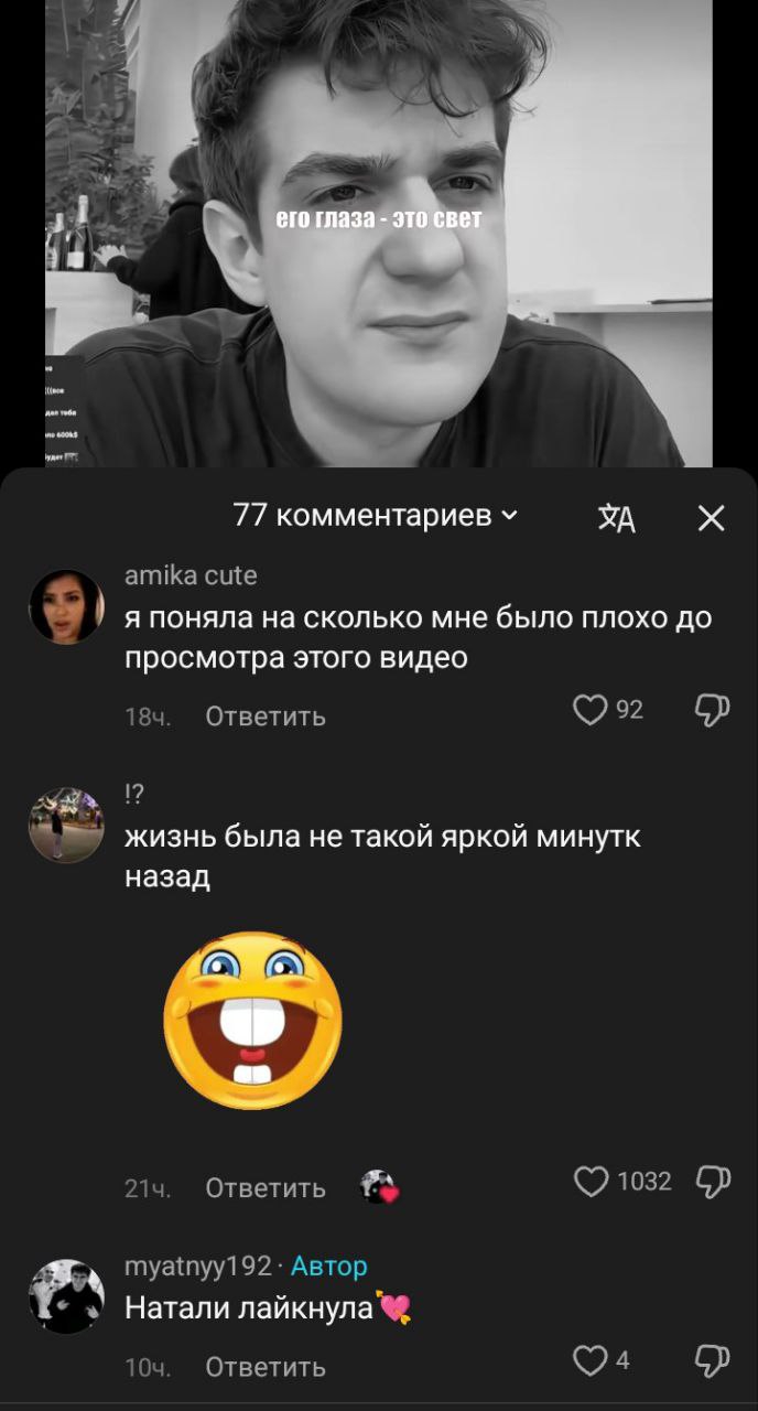 Так она увидела себя и лайкнула, там носатый только с середины появляется, она подумала что видос фулл про неё