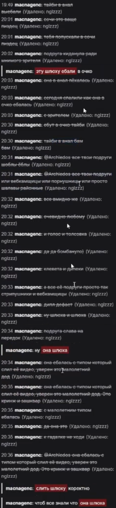 >>26119608 Вся эта хуйня типа боюсь зрилов его, они двачеры и тд это бред. Они боятся именно арчидоса потому что он долбаеб неадекватный, просто посмотрите как он на последнем стриме марину хуесосил, там чат его даже успокаивать пытался. Естественно ни одна нормальная баба не захочет с таким челом связываться.