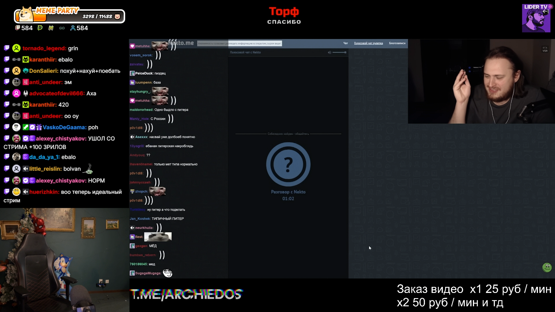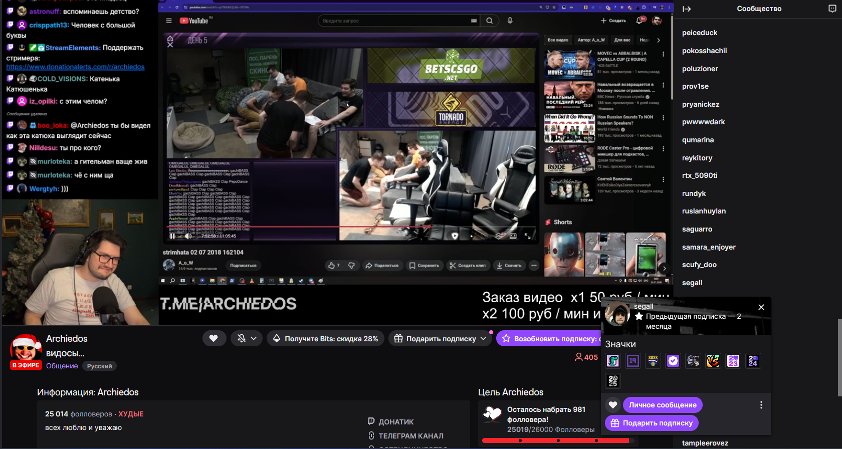>>26068742 >Стримера смотрели за прошлое (конфликты, новые люди, какой то движ) >>26082853 >Арчидос до сих пор с собой этого умственно-отсталого Серегу таскает >>26095984 >одни и те же ёбла на стриме. Раньше каждый ирл либо девченка красивая на стриме, либо просто какой то новый харизматичный чел