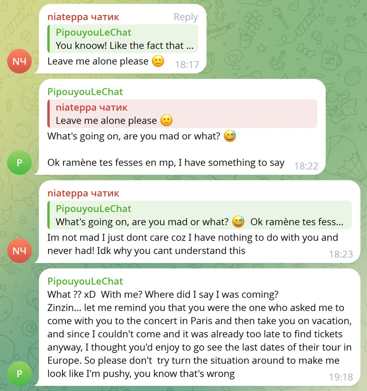 >>26085632 Неиронично назвал таджа гнилым хотя казалось бы, но сказал что всё равно его очень ценит и не хочет ссориться, для него он 3й лучший друг! А сам он тоже неидеален, думает что к нему как к говну относятся и терпят.
