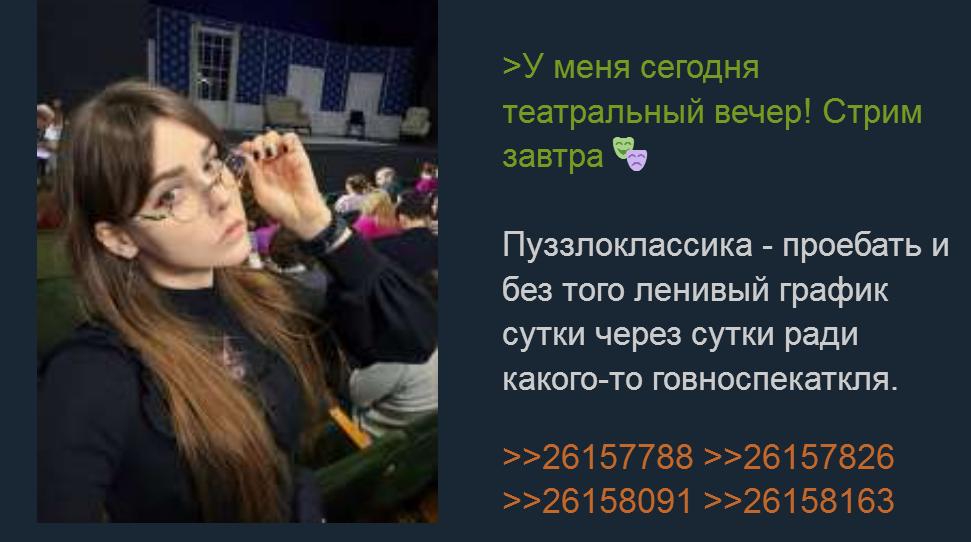 >>26158815 Соре бро, но выглядит как плод твоей фантазии. Я скорее поверю что она с дагами ебется каждый день, чем с осушником. Вообще левый тип какой то, не мэтчится никак. Я понимаю что хочется поддерживать теорию о том что рандомный кисик смог, но не, бредик какой то.