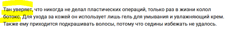 >>26139346 >нормальный 50-летний мущина. Он один такой. Или феномен или приписал себе 20 лет для хайпа. "Тан уверяет". Он скорее 1986 года, чем 1966.