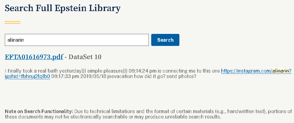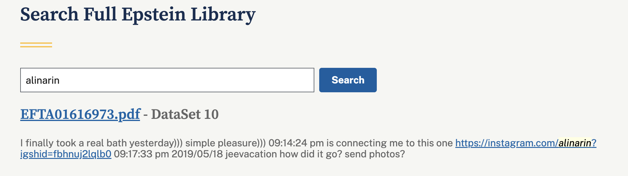 >>26169083 Нихуя не ясно пока. Какой-то тип в переписке с Эпштейном скидывал ее инст ему и говорил, что кто-то с замазанным именем будет его с ней коннектить. Все. Кто это замазанное имя и в каком контексте - хуй знает. Как откровенный эскорт за бабки, или просто какая-то знакомая или знакомый познакомил с мажорчиком - тут не узнать никак.