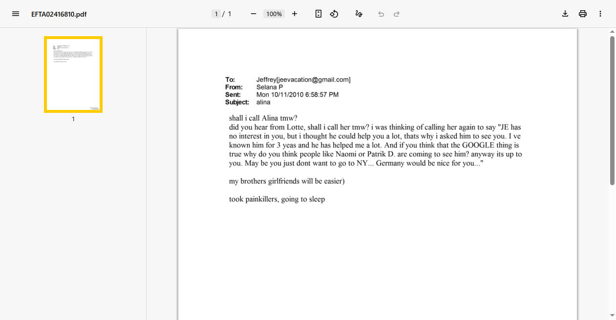 >>26172692 Какая-то блядь, содержантка финкельштейна, судя по тому, что он ей лично денег отсыпал. Ринчик в их переписке упоминается только один раз в виде ссылки на инсту, причем не похоже, что они после этого встречались >ррряяя симп! С EFTA01616920 по EFTA01617003 их общение, вперед опровергать >>26172709 Это вообще буквально турагент, долбоеб