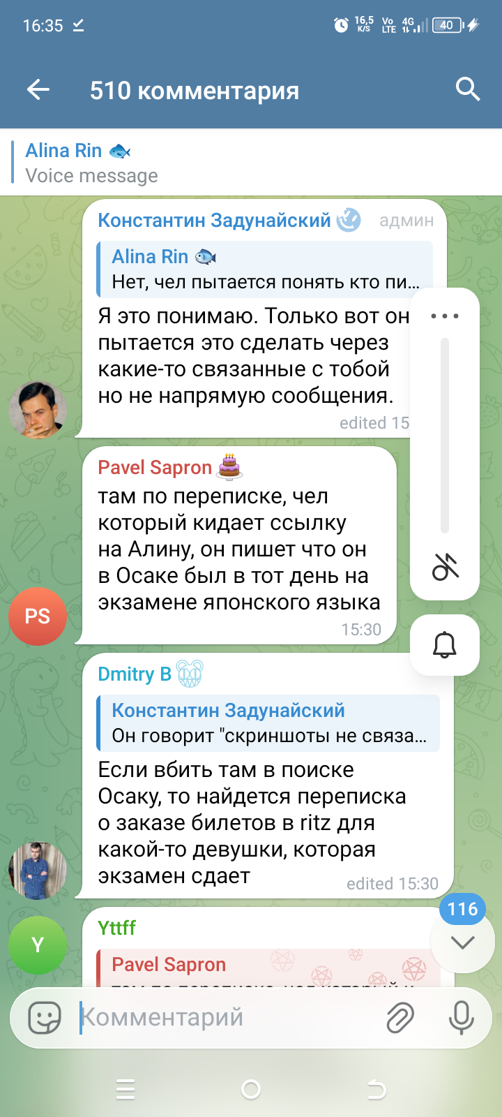 В саб чате ответила тоже про Василидиса, что с ним на тот момент долгое время не общалась. На вопросы нет ли у неё идей, кто это мог быть сказала, что нет т. к. у неё пол токио знакомых. Сказала, что в Инсту раньше часто со всяким таким писали, теперь редко.