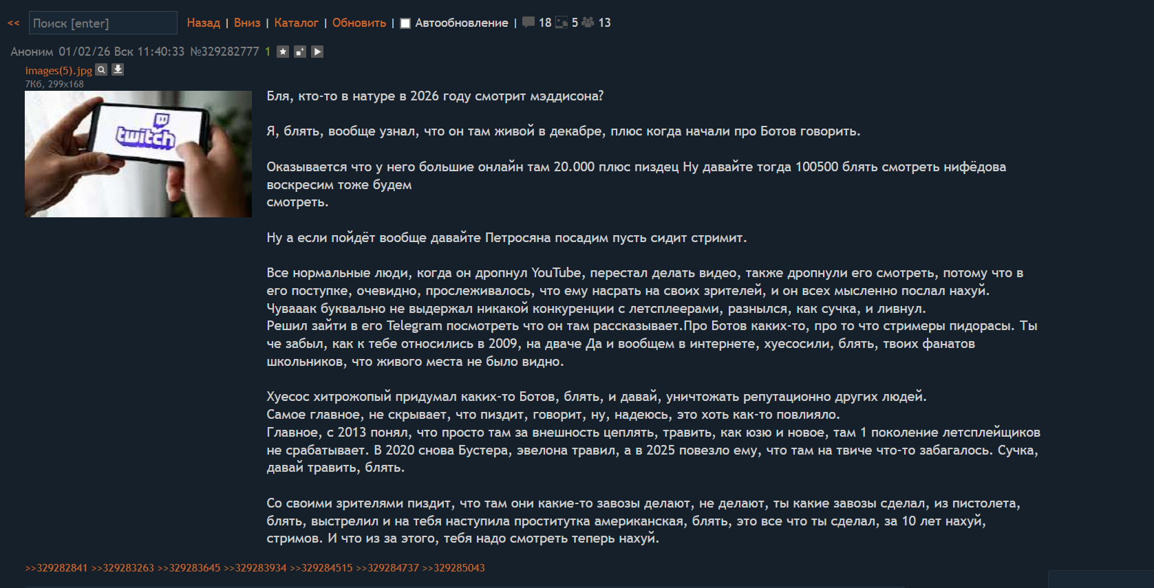 >>26170116 Ну он провёл срез по категории, а не в принципе, это тоже своего рода работа - играть в доту 2 в 2026, а тем более смотреть стримы каких-то червей-пидоров, это нужно быть очень альтернативно одарённым.