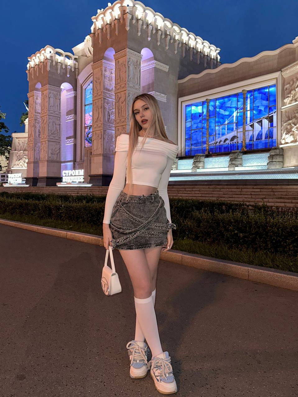 Максимально тупая пизда, склонная к жирноте, с толстыми ладыжками. Ей всего 20 с небольшим, а уже фигура скуфеет. А почему? А потому что дырка настолько тупорылая, что даже ленится держать себя в форме.