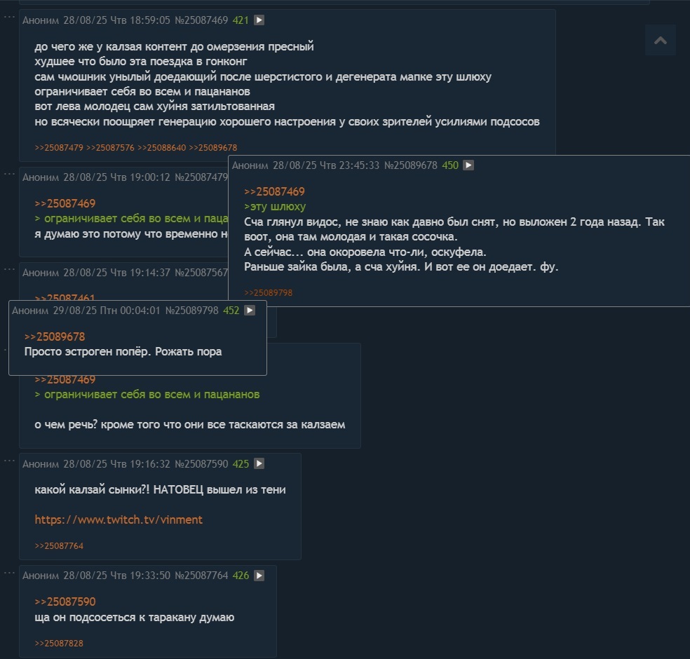 >>24868125 Влада не его малышка, они просто стримят шип-контент, который заходит их аудитории. У Влады после месяца совместных стримов с калзаем нихуёво бустанулся онлайн, до него её смотрело в среднем 700-800 зрилов. Поэтому ей выгодно ему подыгрывать, хотя кто знает, может он и поёбывает её вне стримов.