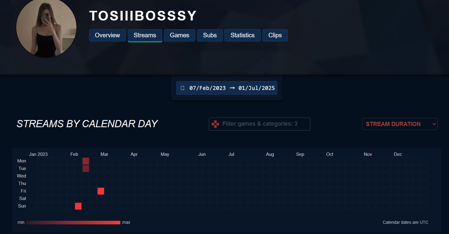 Скорее всего у неё активная фаза перебора тиндеровичей, а так как она их ищет и находит всегда среди уже ей знакомых, то для этого и стримить не надо чтобы перебирать симпов кто гоотов платить за писечку