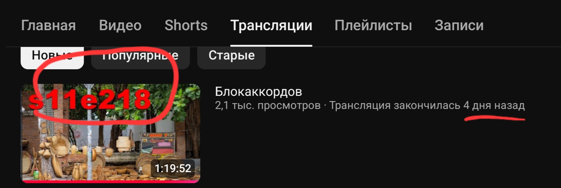 Как я и предполагал. Вот вам ответ про записи стримов. Короче там стримы по 10-15 минут и он их не выставляет. Записал с мобилы, а чет не грузит харкач