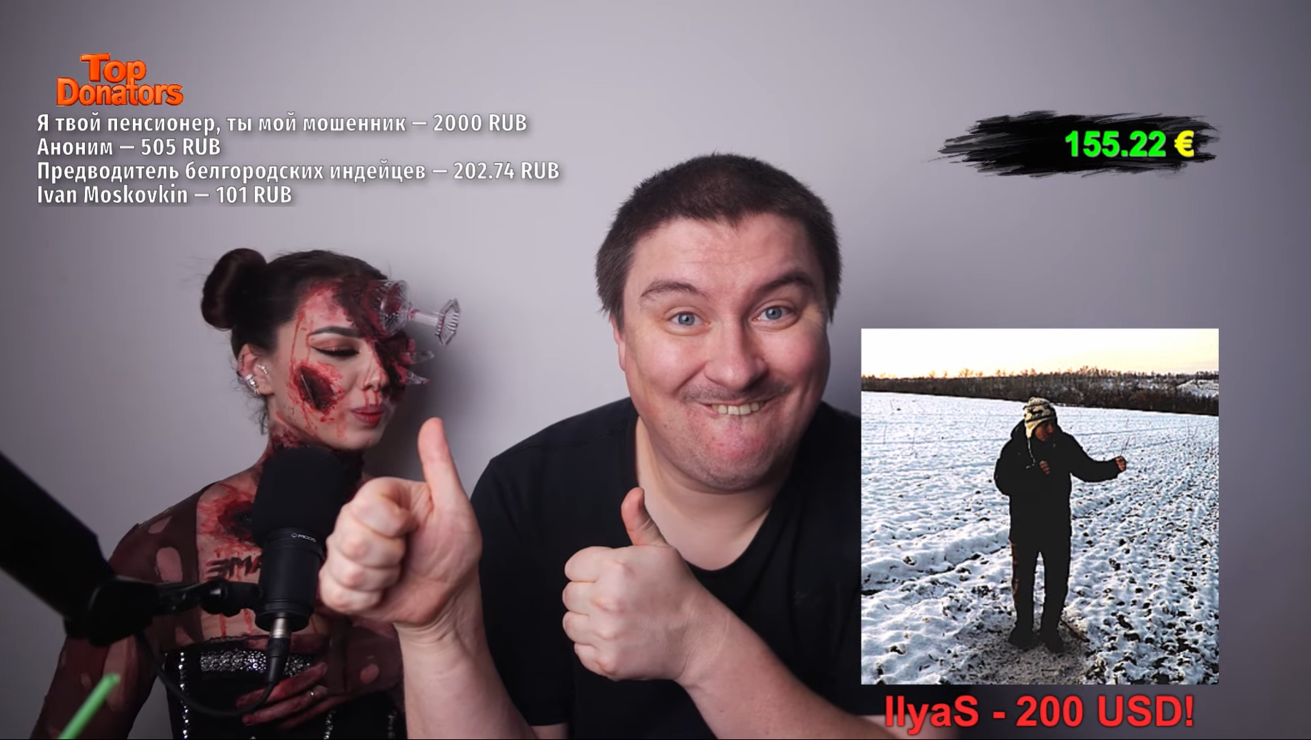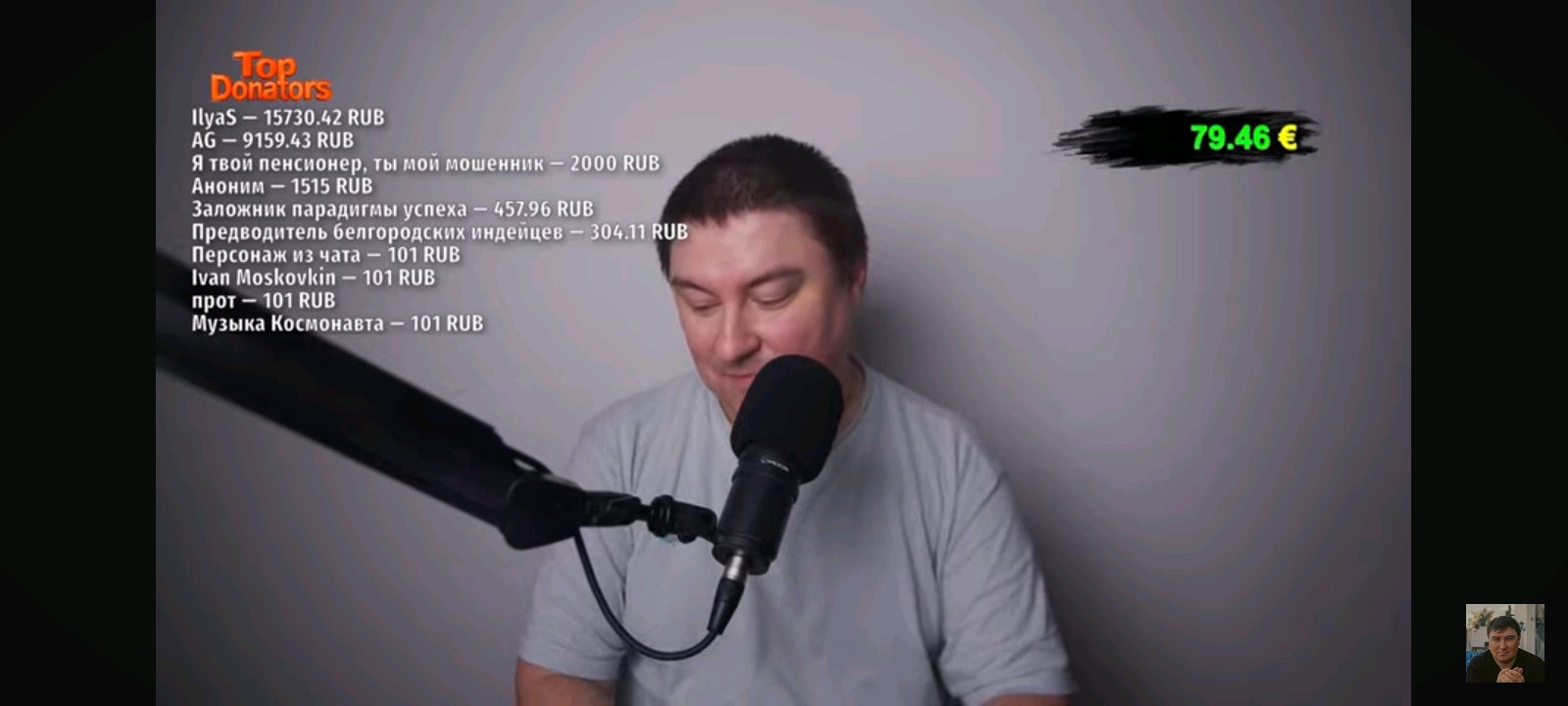 Мне ещё нравится, что у него донаты поделены на те, что идут в настроение (на стрим) и на те, что идут на всякие целевые сборы (новая техника, медицина и т. п.). Словно это не одни те же деньги, падающие Кидавру на кошелёк.