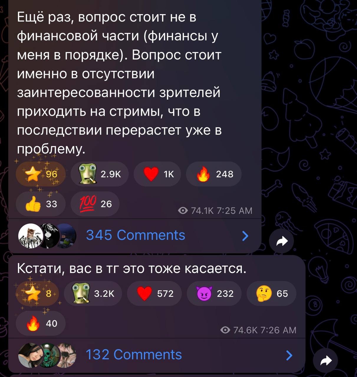 Но да, те жирные времена давно прошли... Теперь большинство всё про него поняли и впереди у него только нищета и стримы на 10 человек (для СВОих) Все жду, когда он начнет на стримах плакать как Владос Савельев, вот это будет каллтент)