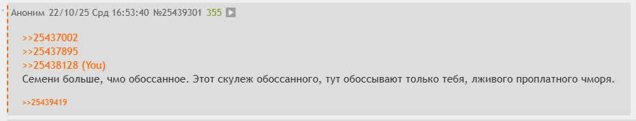 Я гляжу в треде простиутки без изменений, проплатный дурачок продолжает унижаться на потеху публике.