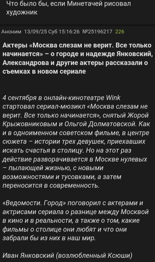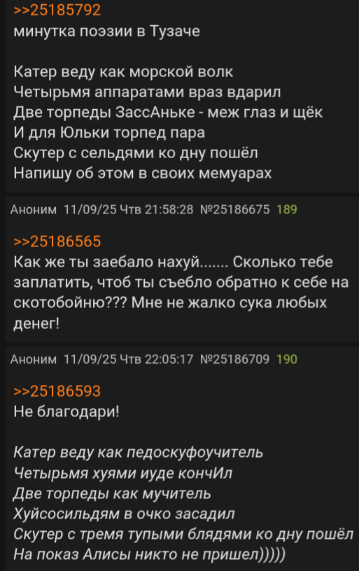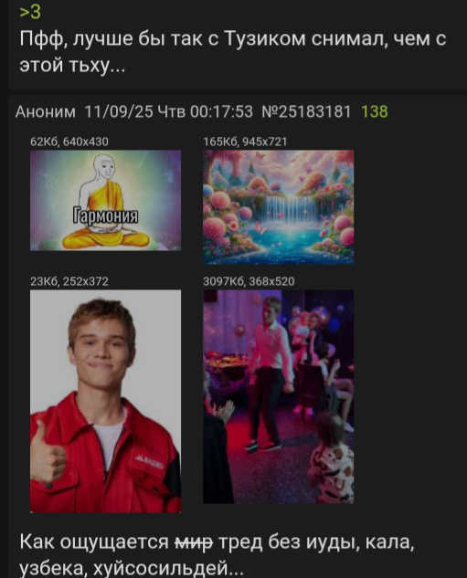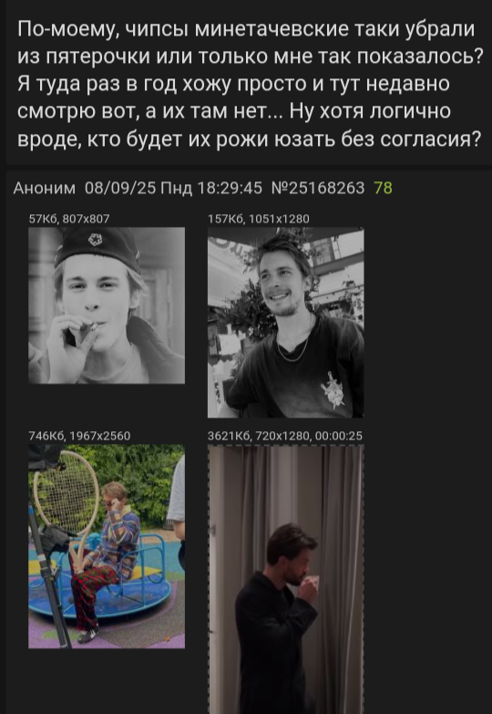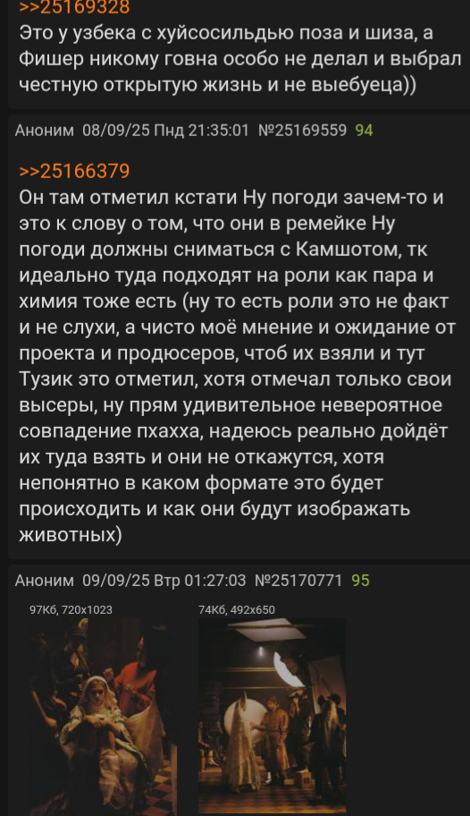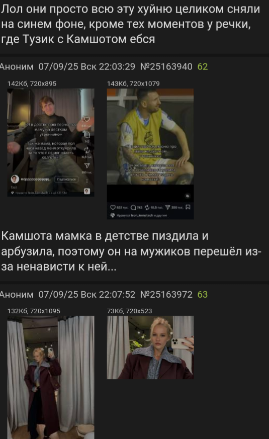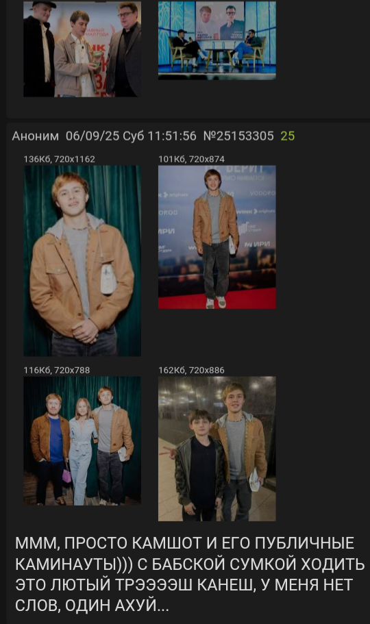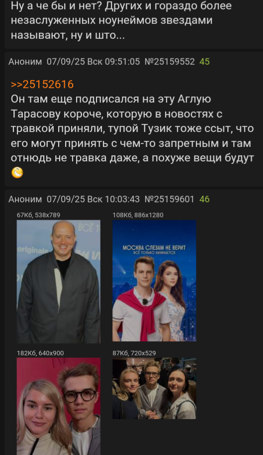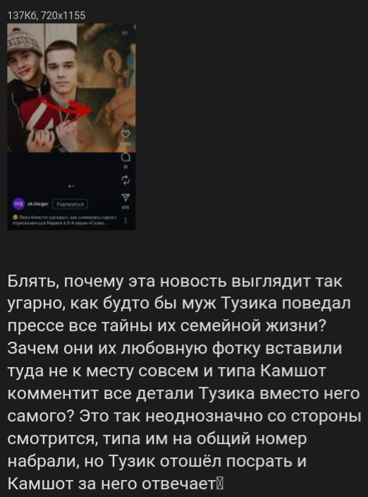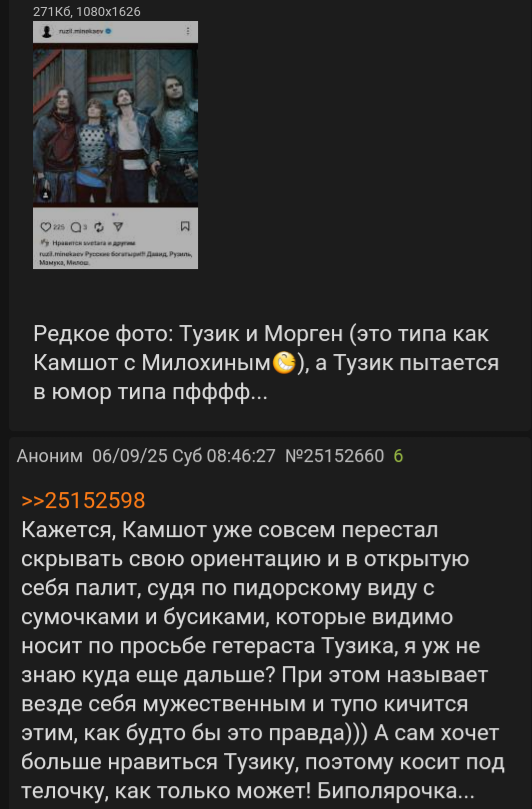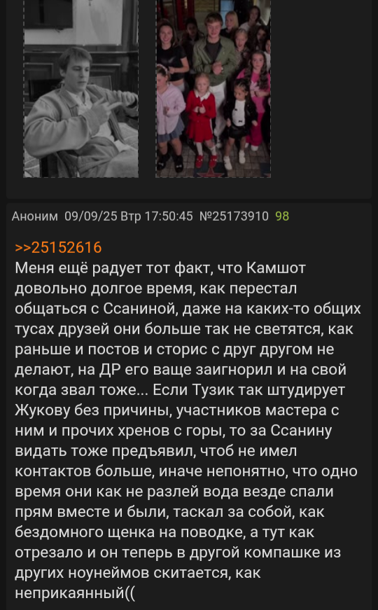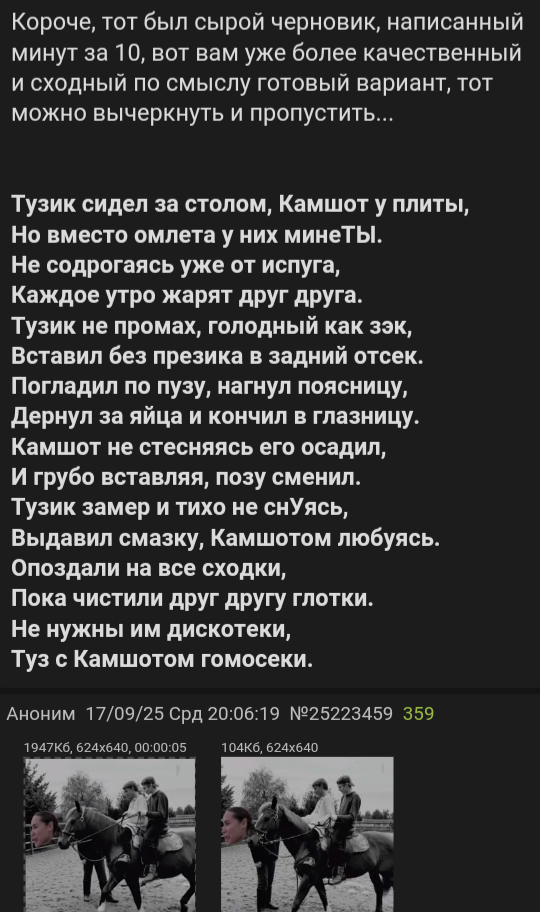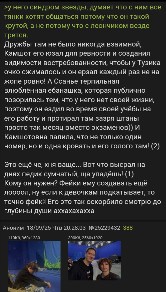 Аноним 27/09/25 Суб 19:21:19 № 25286948 157 >>25286420 Это хуйло тряслось из-за Тузика и не хотело публиковать про него зато про еблю Кала с водилой и вот это выложил (Это такой же наброс из треда как и про водилу) Наверное реально думал что это Копейкин с Янковским.