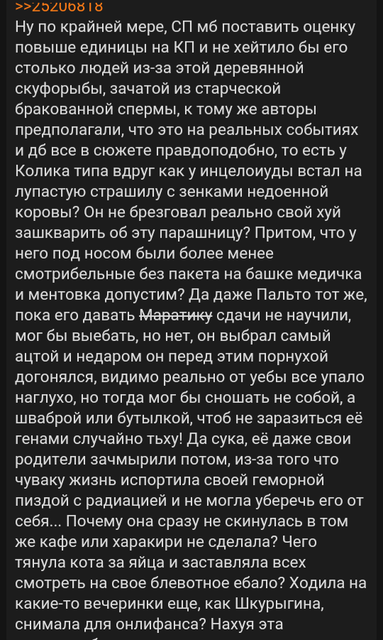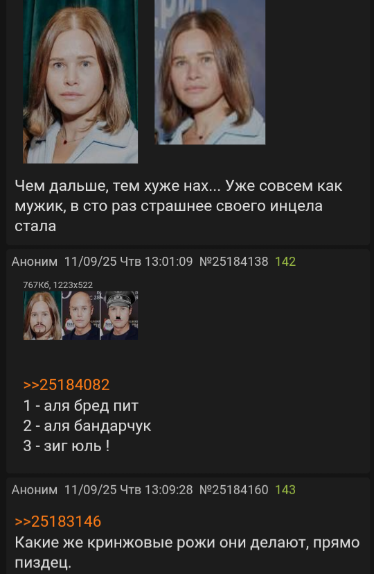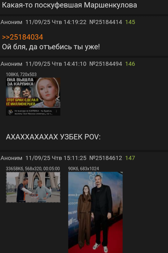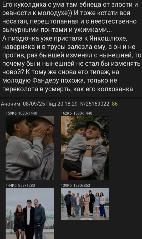 непонятно просто бедобашковые что вцепились метровой хваткой и терпят публичные помои. >>25269966 Аноним 25/09/25 Чтв 09:37:16 № 25269966 60 >>25269793 Ну они обе маргиналки из провинций видимо, такие аля птушницы из сериала Школа, то есть не особо вдумчивые и дальновидные, думают одним днем и одним местом, а точнее низменными инстинктами, как в МЖ главное поскорее залететь от местного альфачазэка или алкаша, лишь бы не одной быть и типа ты всю цель жизни и миссии выполнила, насрав 100500 детей, все эти отсталые бумеры, их родители совковые насаждают им свои интересы и репродуктивное насилие, а если они ещё и не особо умные изначально и без своего мнения и умения парировать этому, то они сдаются и рожают бездумно, типа потом разберусь, а их мужикам тем более пох, не им же рожать и думать о предохранении и сбежать всегда в закат если че можно... У Янкиной амбиции побольше были, она потому и пластику сделала раньше всех, еще до встречи с ним, уже сразу шла с этой целью, даже не думая узнать его получше хотя бы, че зря время терять? Она там ничуть не лучше узбека была на вид😆 Но на узбека там помимо всего прочего еще нация, нравы и религия наложены, как будто муслимы вареником своим тычут рандомному омежке в бане, которого впервые видит, лишь бы опять муж ревновал, а он и не ревнует, пахуям ему, только всех новых знакомых Камшота усердно мониторит, и на весь инет тем более про все грязные трусы выворачивают итд, прочие мерзости что она творит, как Тузик обосрался диареей неделю, фотает его дрочку через штаны и прочее, он уже бедный лицо закрывает от этой вездесущей дуры, которая в очко ему лезет и снимает оттуда отчёты! Любой бы убил уже за такое позорище, а он терпит(( Каловая мб была из токсичной семьи, нам же про неё мало известно, вдруг там все оч плохо и какой-то хрен с горы для нее прям луч света был в этом мире и она и не надеялась на лучшее, потому вцепилась в него мёртвой хваткой? А узбечка тогда ваще полезла к ребёнку, похожему на недоразвитого уошника, который с кучей комплексов и сектанутыми сёстрами и мамашей, ему буквально некуда деться было и защиты искать не в ком, ну никто не обращал на него внимание, на этого зубастого гнома и не повелся бы без причины, а щас он типа краш тиктокерш малолетних, вот что деньги и слава животворящая делает))) Она даже говорила, что влюбилась с 1 взгляда и начала потом добиваться и бегать за ним, ну кому блять это в голову могло прийти такое, особенно тогда, когда он в 5 раз меньше её был и с детским лицом на фоне её проженного рыла Саши грэй? Он на Буратино так органично смотрелся ровесником Виты Корниенко, так сразу и не скажешь кто старше, недаром куколдиху даже спустя пару лет и его оскуфения все равно ещё с его мамкой путают, ибо она оскуфела больше, чем он, как бы он ни старался в этом деле, хотя он даже не следит за собой, а она типа да и все его бабло на это транжирит и все равно все тщетно...