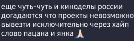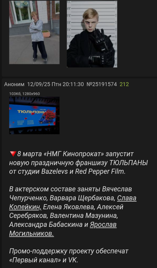 Аноним 25/09/25 Чтв 18:59:20 № 25273206 79 >>25272675 Очередной мискаст из-за хайпа СП,сцены с той бабой походу снимали где Тузик на табурет встаёт а она сутулиться потому что Тузик 165 примерно ну какой нахуй богатырь?С Калом в роли Хоя тоже самое, фанаты группы сгорели с этого и режиссер стал нести хуйню что сняли всего одну сцену чтобы посмотреть на реакцию людей ага а на деле скорее всего уже попили эти бабки и отсняли на коленке.