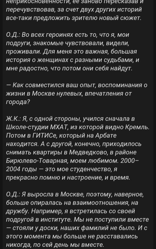 Я ностальгирую о каких-то чувствах, которые я, как взрослый человек, немогу испытать. Отех чувствах, которые тогда дались мне впервые: ощущения влюбленности иразочарования, прогулы школы иинститута, походы вкино вместо уроков, какие-то мальчишеские авантюры. Когда ты становишься старше, ты словно встаешь на какие-то рельсы и думаешь, что тебе понятно, что такое жизнь и чего от нее ожидать. А когда находишься в “бессознательном возрасте”, возрасте порыва, возрасте эмоций и чувств, которые несут тебя вперед, – это самое интересное
