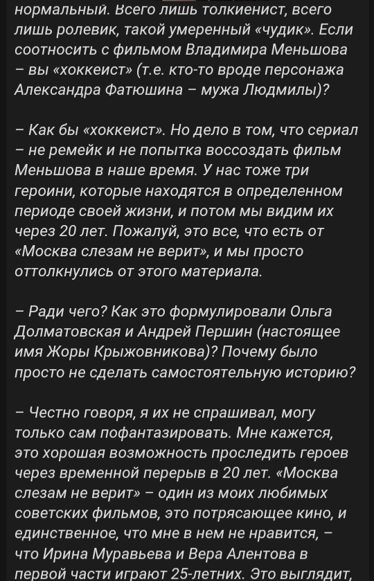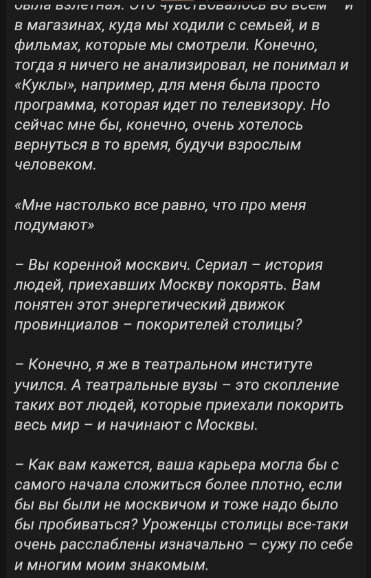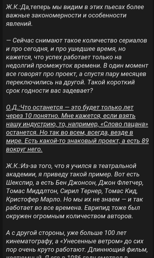 Аноним 24/09/25 Срд 20:27:58 № 25267286 44 >>25267132 >Ну я смотрела серик. Главные там по сути двое: татарчонок и слащавый блондинчик со сценическим прозвищем "Пальто", затем сценический брат татарчонка Янковский, антагонист Кологривый, ну и далее всякая второстепенная шушера типа этого Копейкина и Пересильд.