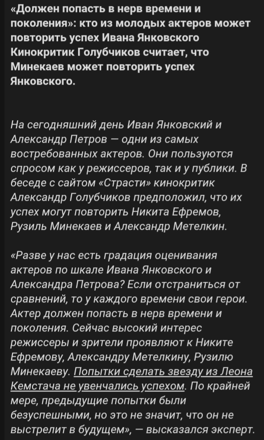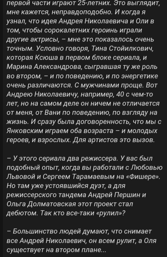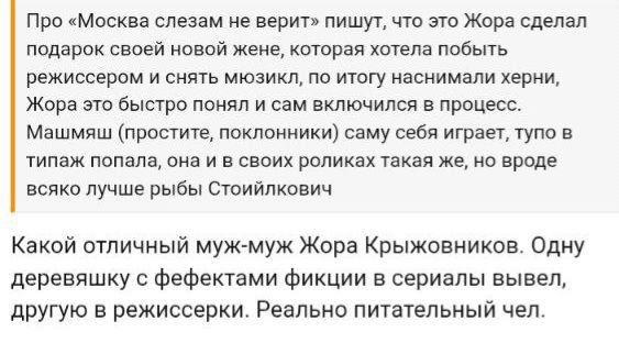 >>25461311 >>25461223 Про Кала звучит как опять фантазия Иуды,про водилу и т.д. Собственно как тут и писали >>25451583 Что Антонина пойдет наваливать шизу про других актеров ебанину Про Кала не верю, может он давал в жопу пару раз за роли но чтобы там он реально фапал на Янку не верю ибо там чисто зависть что Янковский получает роли просто