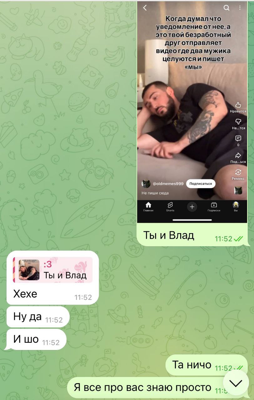 У кого зрение хорошее??? С кем это там у нас Тузик так активно чатится одними кружками и стикерами? И нахуя это пересматривать заново?🤭 Это же явно не канал, а диалог, кружки с обеих сторон идут...