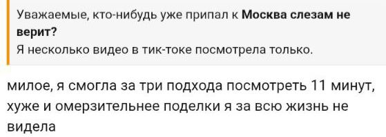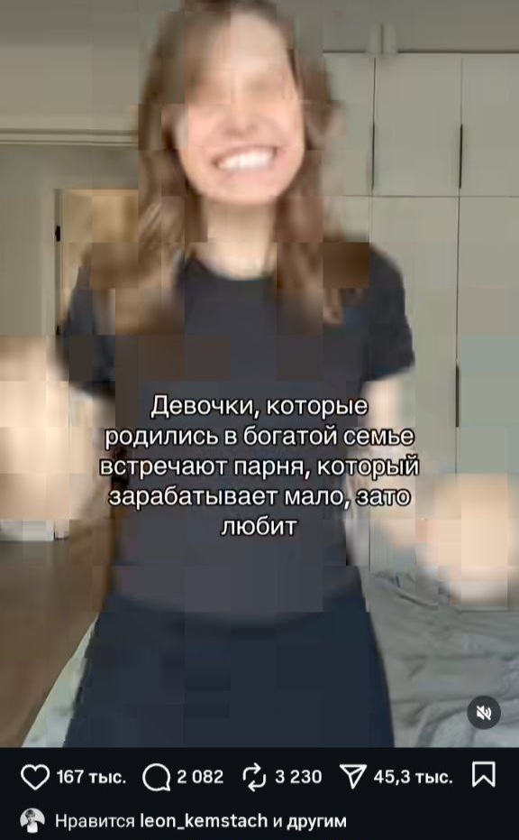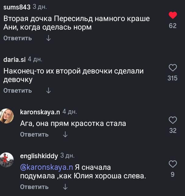 Попался рилс с хуйсосильдью и первый коммент, который там был залайкан: 1) какая страшная... второй: очень не красивая 3) какая-то бабка и колхозница😂😂😂