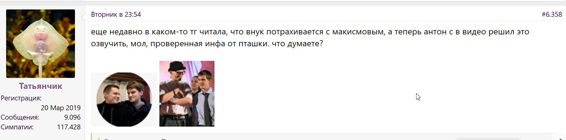 >>25461223 Так Кал переодически говорил что ему нравится Тузиль,про Янку там реально скорее зависть.Бля а чего они к этому Максимову прикрепились?Там с Тихоном куда больше очевидного было а он все про Максимова трастит и непонятно зачем в прошлых роликах орал что про Тузика не правда а вот про этих точно правда.
