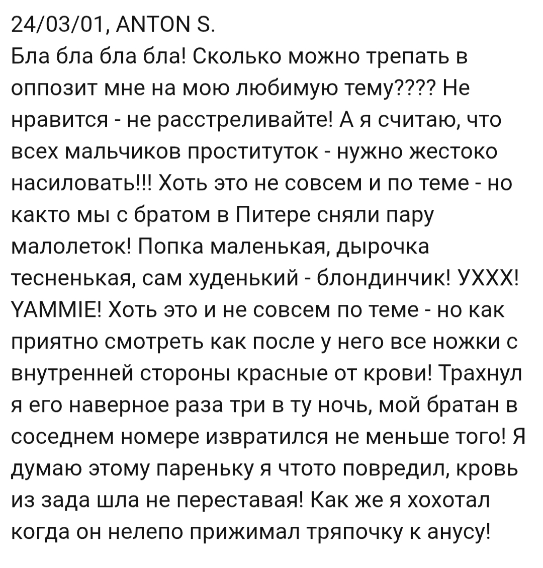 >>25459490 >>25459504 Да как-то пох на его био и прочее там, тем более это уже давно всем кому не лень известно было, на Антитосьнике полно инфы всякой о нем, все таки не надо превращать тред в его филиал)) Пусть он там хоть младенцев ебет, у нас уже есть свой педоТузик, который тоже младенцев ебет, причём в прямом смысле этого слова, а тот конечно же покрывает своих, раз подставляет ни в чем не повинных людей, которые хотя бы честнее по жизни, под защиту маргинального карлика, любителя пиздюков, сочиняя эту ересь, лишь бы он остался безнаказанным по закону... Ну так если даже по закону не можем привлечь, то сама жизнь и карма его накажет, а тут к счастью Гандоша против законов природы бессилен, хоть усреца пусть клевеща на непричастного Фишера хех