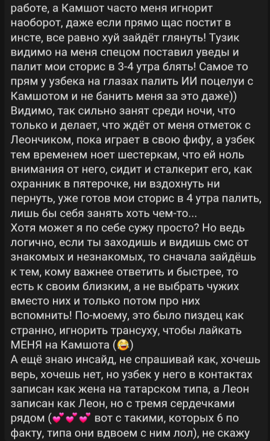 Блять меня щас вынесло))))) Как раз в тему скинул среди ночи и не видел походу этих сплетен, если думает, что все ок🤣🤣🤣🤣 Он че реально без него жить там не может прям? Что на фоне всех слухов буквально ща опозорился с этой сторис ухахаххпха! Представляю, как бы Тузик после слива скинул милую фотку с Камшотом, чтобы все подтвердить так сказать оруууууу....