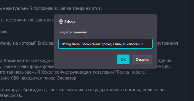 >>25445558 >2) На связь вышел Команданте. Он осудил Лексуса и заявил, что никакого отношения к Бригаде он больше не имеет. Также глава формирования рассказал о своем ранении, полученном в зоне СВО. >Он подтвердил, что так называемый Хохол сейчас руководит остатками "Полка Набега". >По его словам, в зоне СВО находится также Оператор. > >3) Сам Лексус шантажирует бригадных, грозясь слить их в государственные органы, если те не выдадут Хохла-Реваншиста. Вот всё кроме этого добавляйте. На внутренние тёрки штатных внимаеблядей как-то похуй.