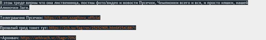 Телеграмчик Пусечки: https://t.me/azagitova_official