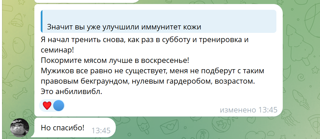 >>25460833 Если снаружи болит, мирамистинчиком побрызгай на нее. А у меня т.н. душа. Почему-то со мной решила пухлотянка с работы молодая (!) заговорить недели две назад, ну довольно много болтали, я уже себе нафантазировал всякое, думаю напишу ей по одной теме, которую затронули, не личное, а она "спасибо пятое-десятое" и все. Вот, думаю, старый я дурак и вот что сычёвая жизнь делает с одинокими мужиками. Пробудила она то о чем и думать забыл уже много лет как. Пиздос, деданы, как же плохо быть аутистом, лучше уж полностью на удаленке копейку тогда зарабатывать, чтобы на ровном месте не произошло чего-то подобного. Не знаю, есть ли смысл продолжать также общаться на работе и может из этого что получится? Не умею с людьми взаимодействовать на подобном уровне.