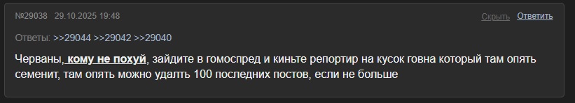 >>25478673 избавься уже от этого scoofs mindset, chervyak! почему ты думаешь, что если кто-то постит володьку с рылом или навозного гомункула, либо пишет о них в рофельной коннотации, то это направлено лишь на то, чтобы дегуманизировать реального человека? это все персонажи чт, которые имеют мало общего со своими реальными прототипами. к тому же, за редким исключением, они почти никогда не увидят то, что здесь написано
