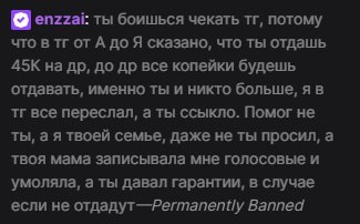 4.) Леонид отказывается отдавать долг #enzzai'ю под предлогом того, что он был лишь связующим элементом между Ензаем и его матерью: «Я БУДУ ПОСЛЕДНИЙ ЧЕРТОМ, НАХУЙ, НО Я НИЧЕГО НЕ ОТДАМ, НИ КОПЕЙКИ БЛЯТЬ!»