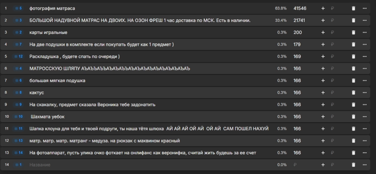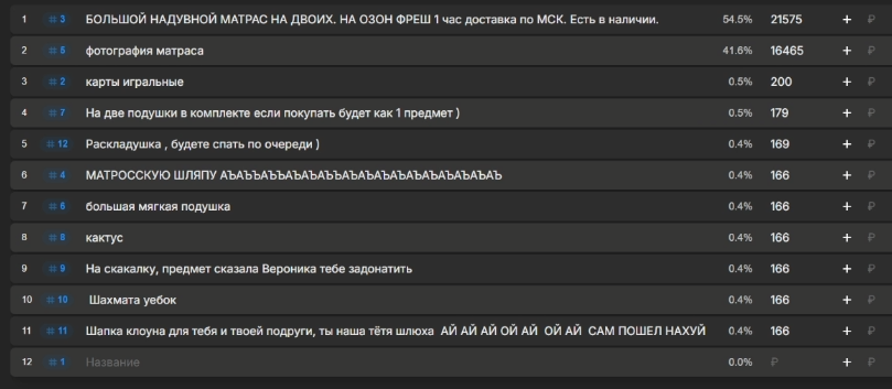 я просто сравниваю с праймовым меллстроем времен москва-сити, у которого и онлайн был в разы больше, и интерактив объемнее, и по харизме явно не хуже. и то ему донатили в разы меньше, донатили по 10к чтобы телку с блкона выбросить. а тут пензодауну 200к за картинку матраса) ну-ну, почти верю