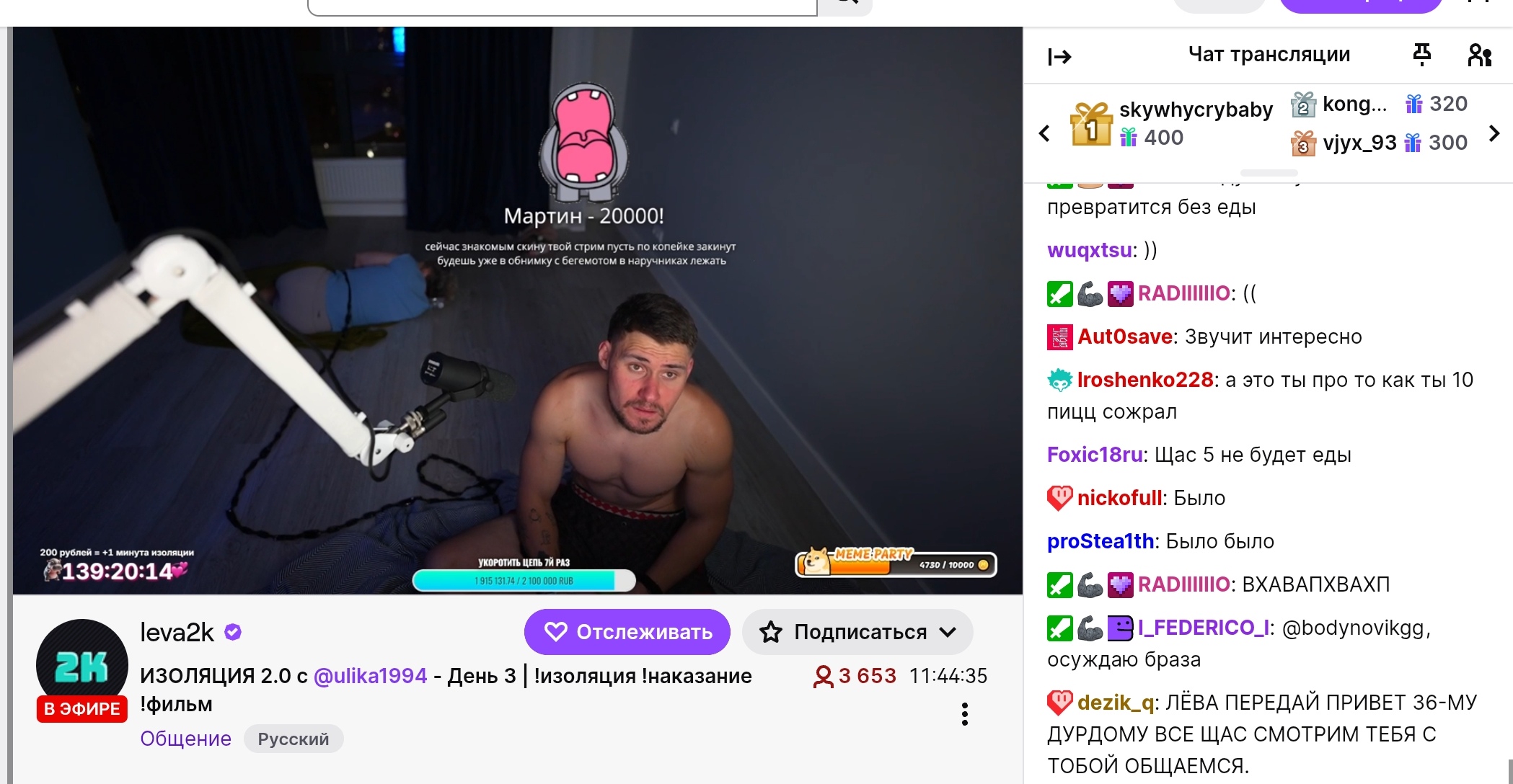 Срыв покров произошел уже несколько раз, но зрители продолжают верить что персонаж выше им сделает завоз и калтент. Даже его изоляция это хуйня, он сидит в квартире жрет и спит, ехать никуда не надо и делать тоже. Он же не какой то лох типо таракана или пидаренко чтобы сидеть в палатке