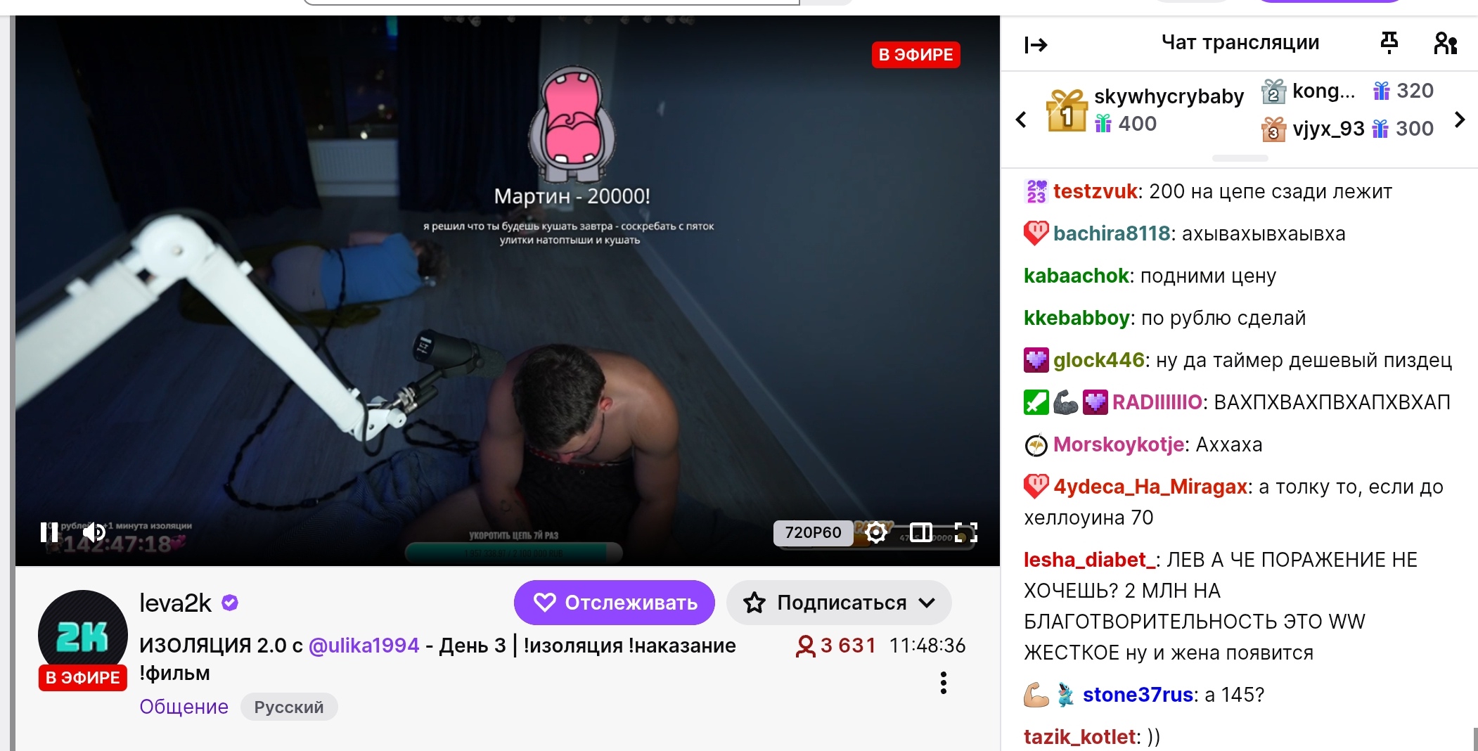 я доначу 2000 на контент, на качан капусты, в рамках законов РФ, правил твича и условий челленджа. в итоге эта шлюха убирает лоты, самодонатит лоты, поджирает за кадром. то есть он по факту уже проебал, по факту должен перевести бабки в детский дом, по факту уже кинул детей на 3 ляма, а ему нихуя, никакого спроса.