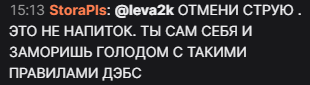 7.) Леонид сказал, что у нас «скотское» отношение к нему из-за того, что мы не оплатили лимонад и не задонатили им на квартиру