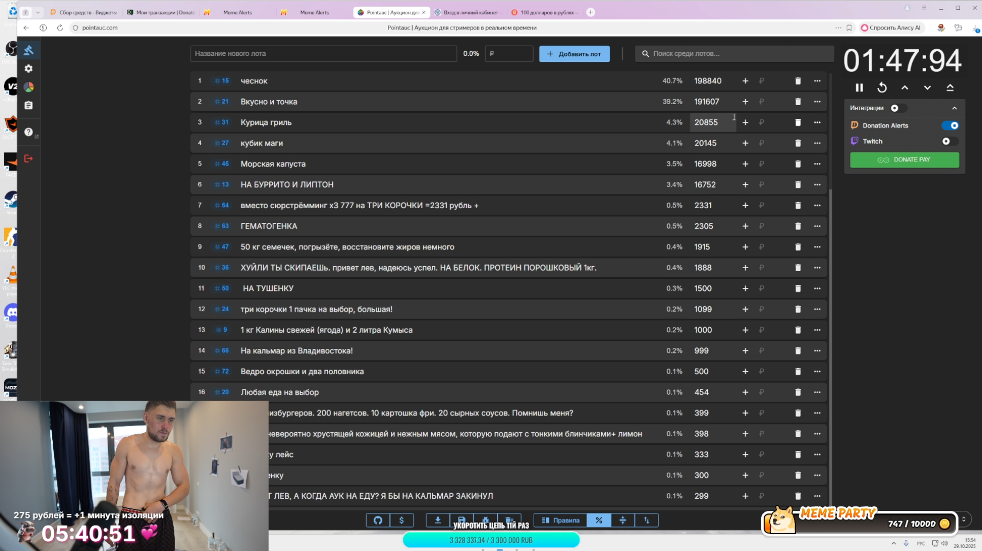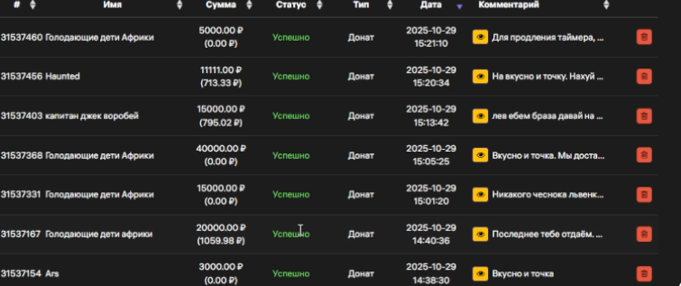я думаю какую-то энную сумму денег через него отмывают сто проц. иначе я не могу никак объяснить вот эти донаты по 40 и 50 тысяч в 4 утра, когда аука нет.