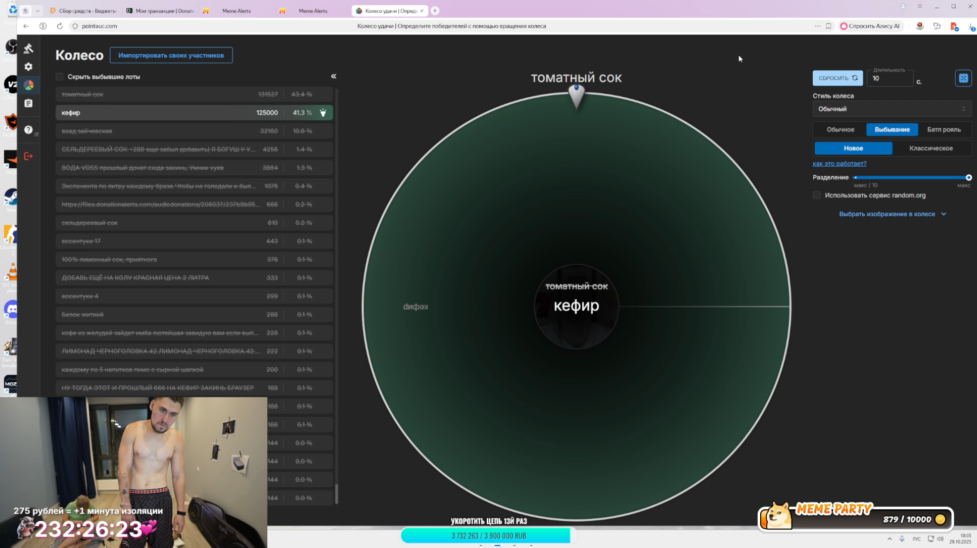 противостояние кефир против томатного сока с чеком в 300к будто всеобщая шизофрения или отмыв с выводом как кто-то может сидеть весь день смотреть эту пресную хуйню и донатить