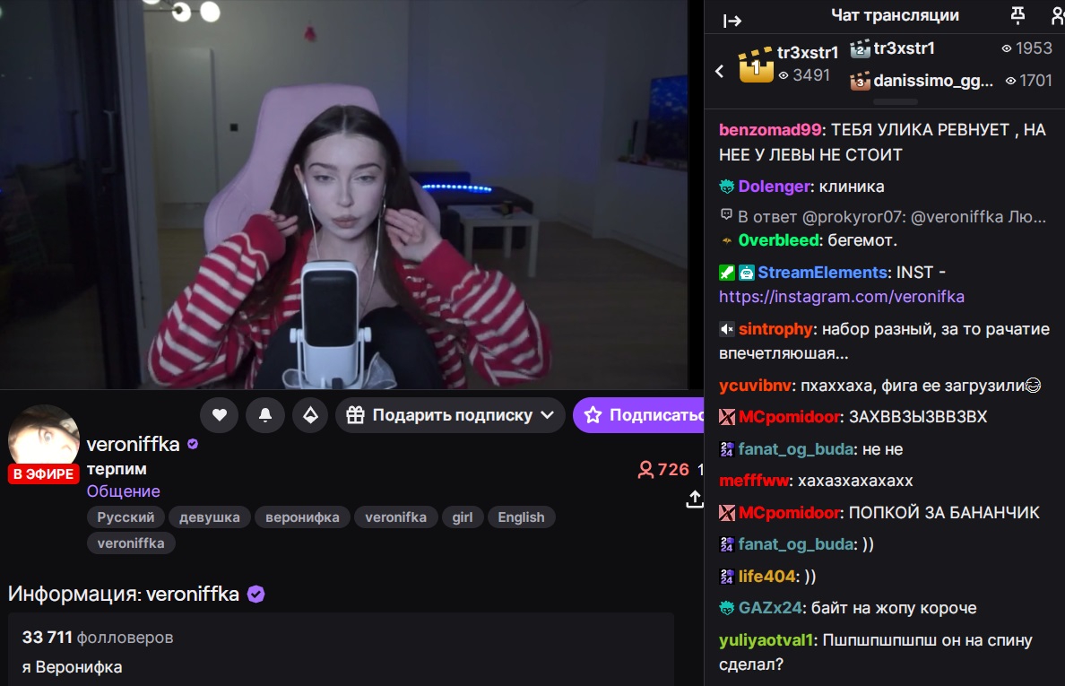 >он начинает включать сблева стайл нытье, в следствие чего стрим моментально становится не смотрибельным. ну тебе может и не смотрибельным, а у него уже лямчики за спиной и живет в дорогом жк