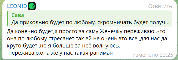 Женя, могла бы и записать своим верным симпам кружочек вечерний, раз битва идет за каждого зрителя, - как добралась, как самочувствие, какие планы на завтра