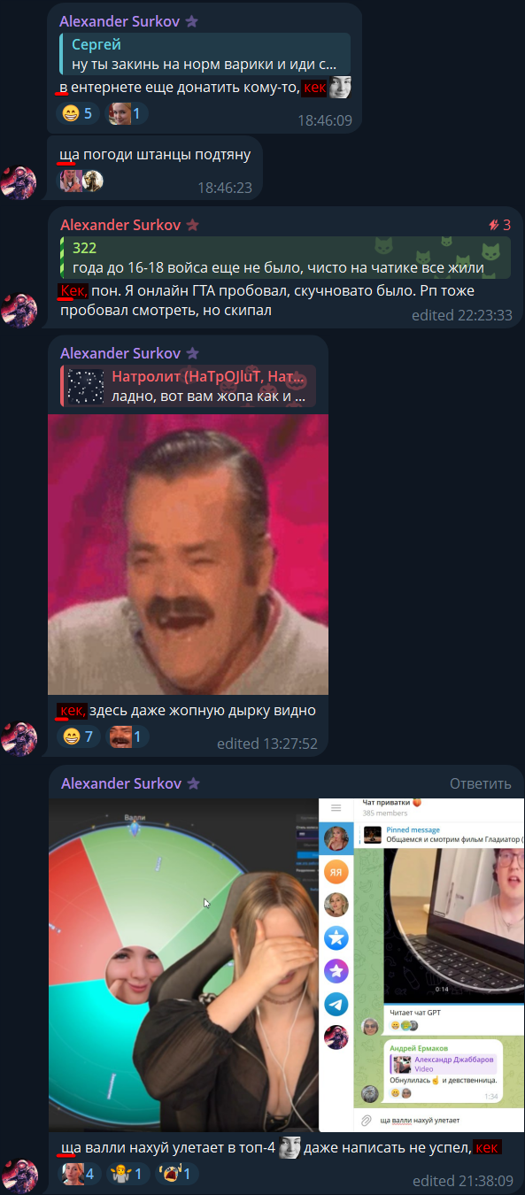 Совсем с реальностью связь потерял, и удивительно это совпало с тем что п-дрилка на 2 дня из треда пропадал, оставил Жениса без защиты. Видимо доктора что то с таблетками сделали.
