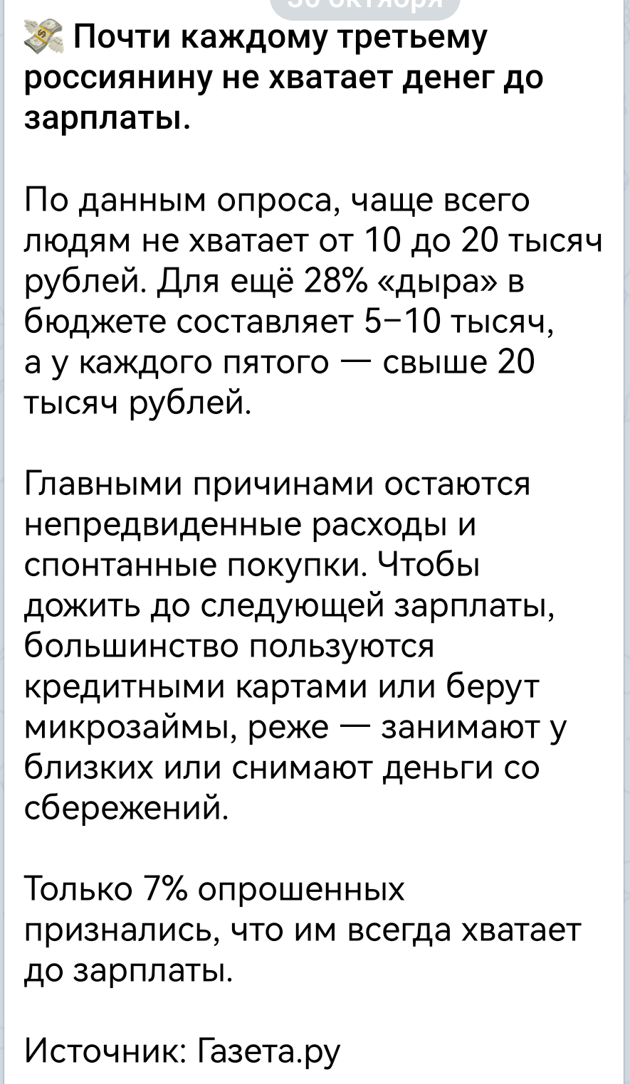 Настроения вообще нет.... покушать вкусново нечива. Творог в себя еле запихнул с утра с кофем. Как сухой творог жрут непонятно...вот вроде есть куртка крутая и ботинки модные, две гитары, самсунг а33, а я невесел...вот была бы видеокарта 5090 и шлем, а так чему радоваться?