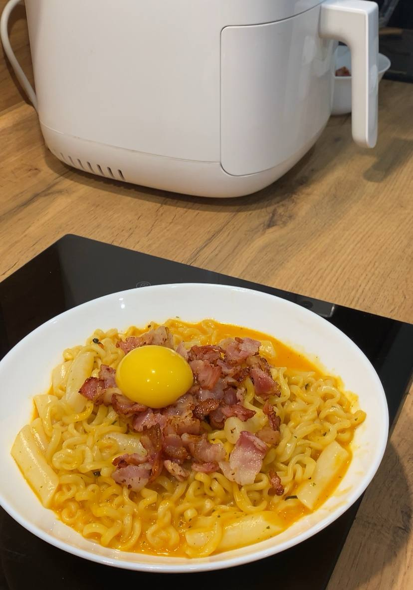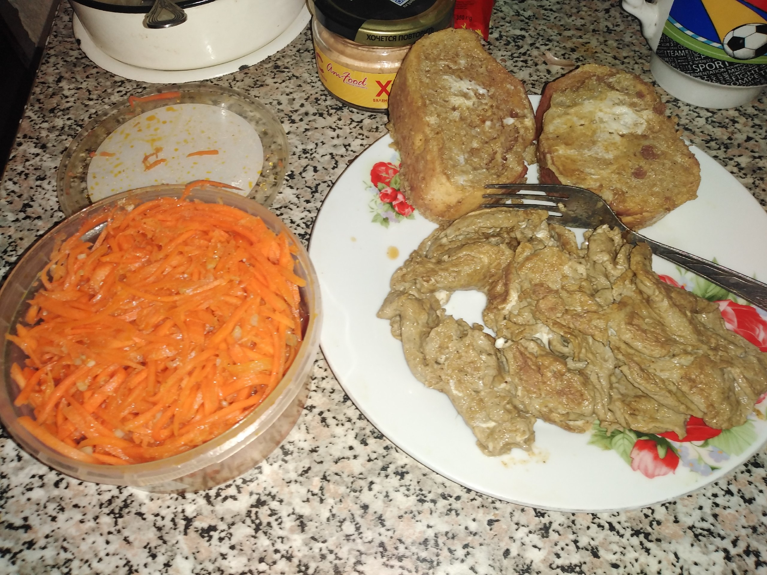 обедаю щас своей фирменной яичницей "по-цыганоиндийски" с карри, красным и черным перцами плюс корейская морковь из "Магнита" и черный чай с 3мя ложками сахара