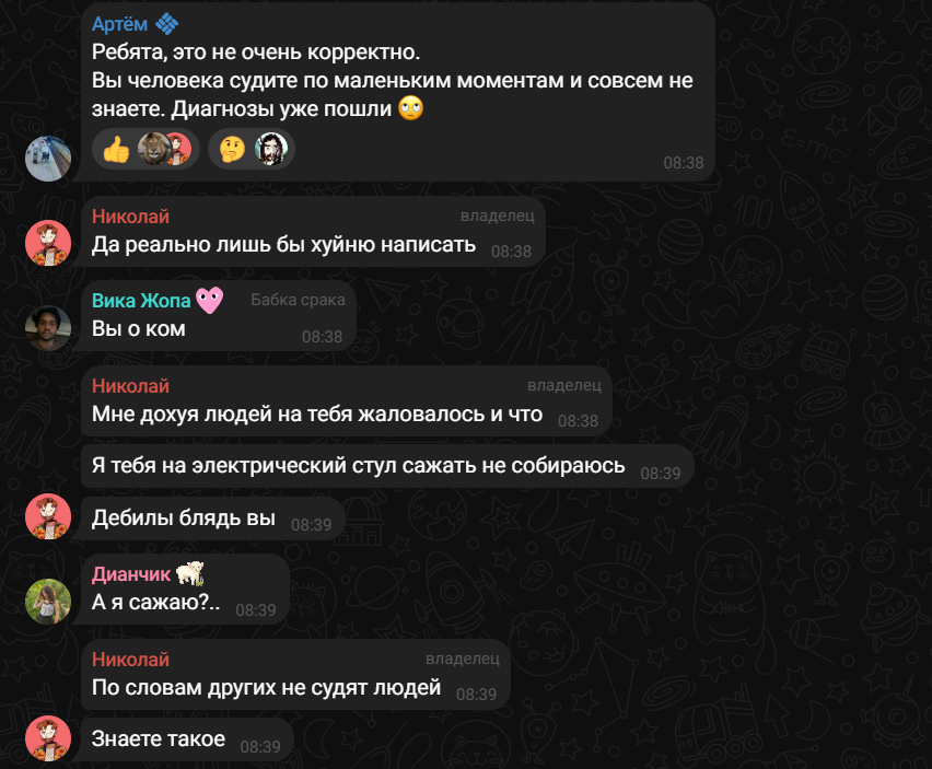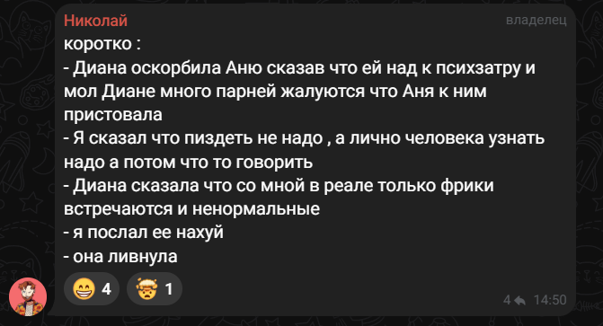 Репортёров несколько, там целая гидра и я об этом знаю так как завербовать пытались и меня, так же я знаю что один из членов это диманлит, ну он самый пассивный просто скидывает огромную пачку моментов за которую можно притянуть и комменты в чате скринит которые можно приплести к уничежению по религии/расе. Конечно никто в это не поверит, но я все сказал