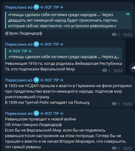 Я также напомню, что ты прокидывал мысли о неком РЕВАНШИЗМЕ. Только вот есть одна проблема, а разве РФ проигрывает в этой войне? Чтобы ссылаться на такие прецеденты нужно, чтобы они хотя бы были, чего мы, к счастью, не наблюдаем. Кстати, как я понимаю по таким аналогиям Российского государство - копия Гитлеровского или я снова неправильно тебя понял?)