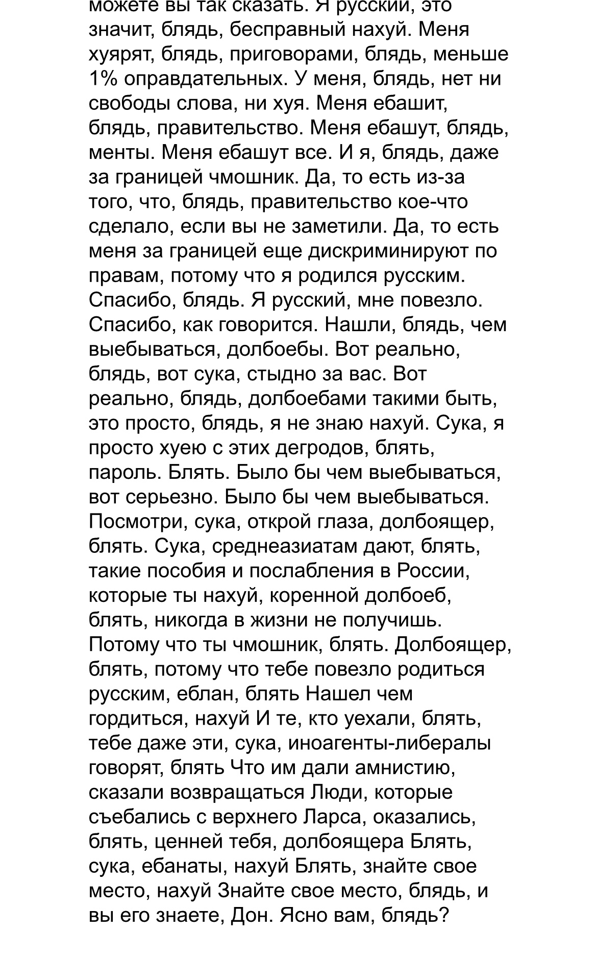В жопу иди, в моём случае это не работает, так как я медиаперсона. Ты такой же тупой, как и аудитория Скабра. Скабр жаловаться на долбоёбизм аудитории по позиции: "Нахуя ты даёшь людям обратную связь?" "Блять, может потому что я публичная персона? Это моя задача давать обратную связь нахуй дегенераты!"